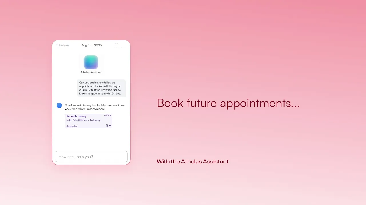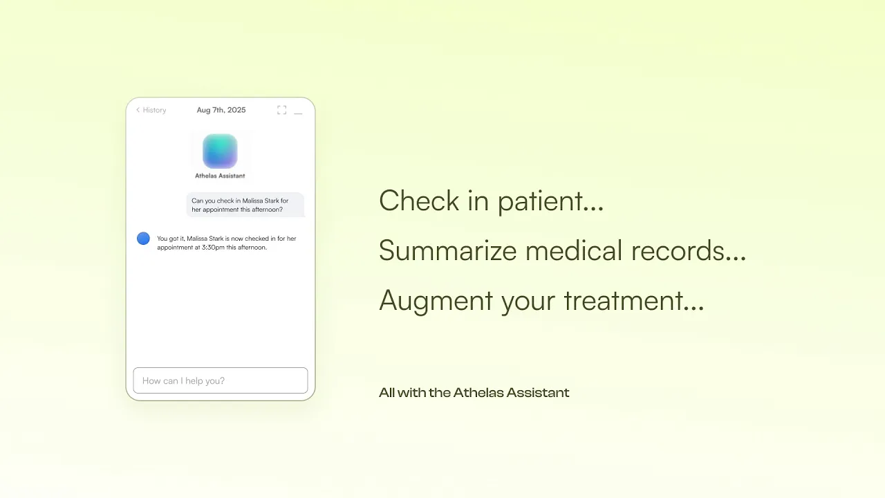 Assistant isn’t just a set of tools—it supports end-to-end workflows that mirror real-life clinic operations. Here are two examples: