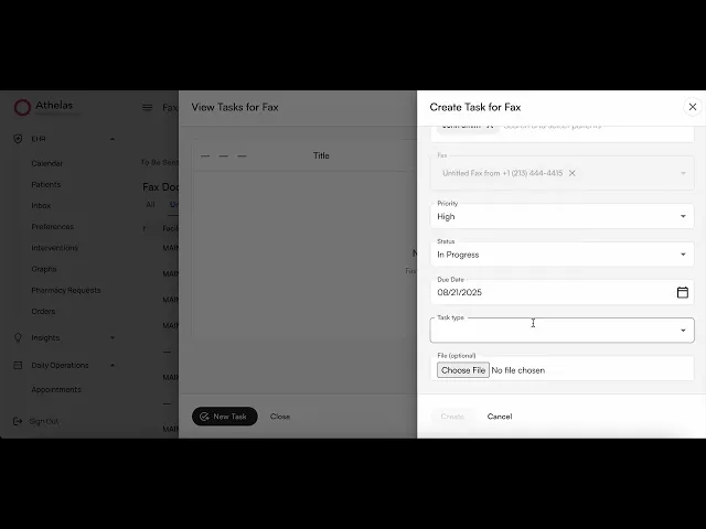 Yes, if a fax is already linked to a patient, creating a task for it links it to the patient automatically. That means you can access it the patient’s task page as well. You can modify this behavior by adding or removing patients from the Create Task form.