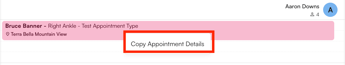 Copy and Paste Appointments Air has a great feature that allows you to copy and paste any appointment on the calendar page directly! To copy an appointment, either double click or hold control on your keyboard and click on the desired calendar block. Pasting the appointment will create an exact copy of the appointment you selected, but change the date and time of the appointment based on where you selected on the calendar. When done correctly, a small popup will appear with the option to copy appointment details. Select this option then, click on any calendar slot and the option to paste appointment details will appear.