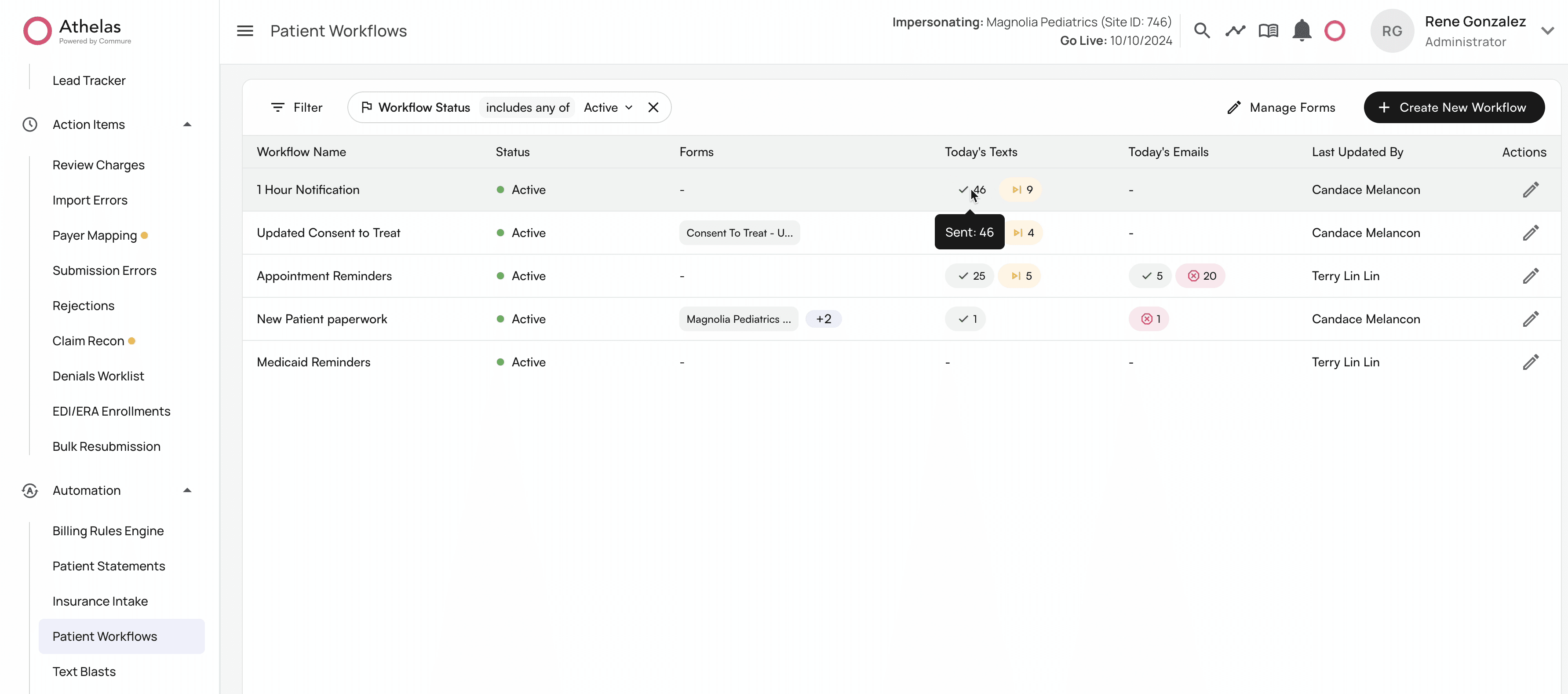 - Set up workflows to be texted/emailed to patients with pre-visit forms