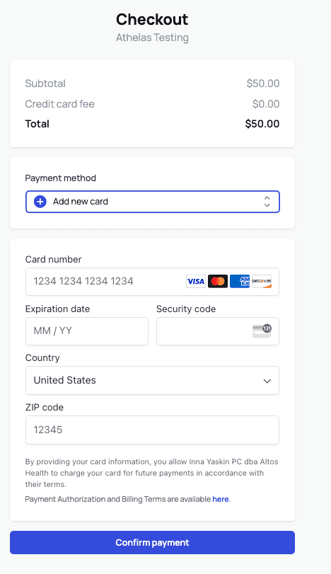 Confirm. A request for payment will automatically be generated and sent via text or email within 5 minutes.