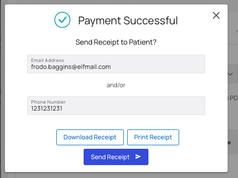 Confirm, then confirm again in the new popup. Finally, you’ll have the option to print or send a receipt to the patient.