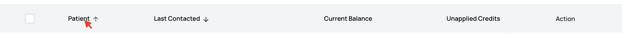The Patient View tab shows a list of all patients, when they were last contacted, their current balance, and any unapplied credits they may have.
