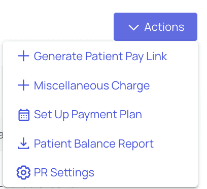 Returning to the Patient View tab, you’ll see the ‘Actions’ menu in the upper right corner. Click to view the options at your disposal.