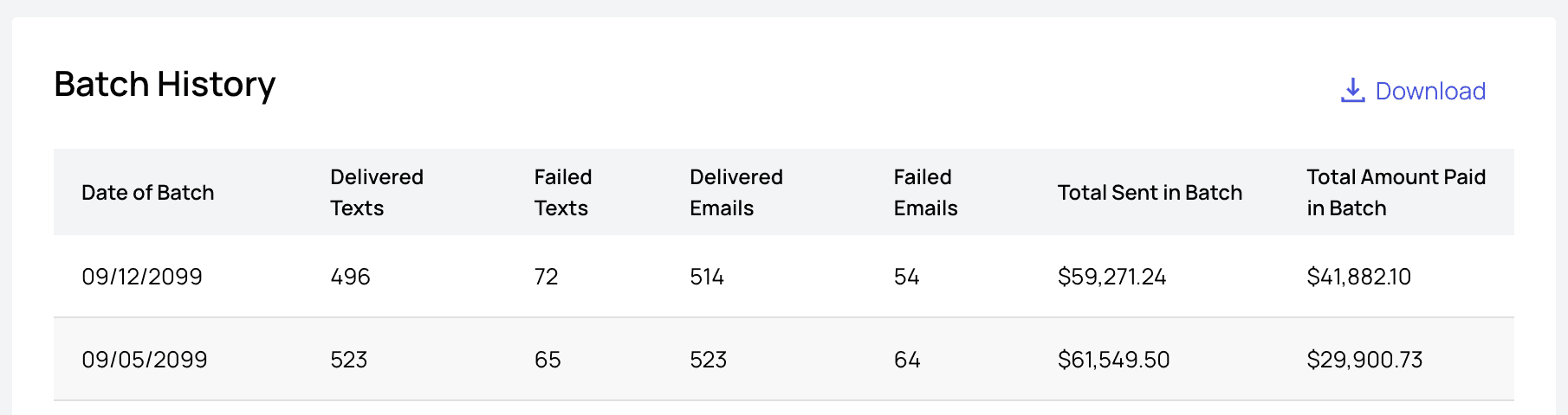 - View upcoming and historical batches of statements