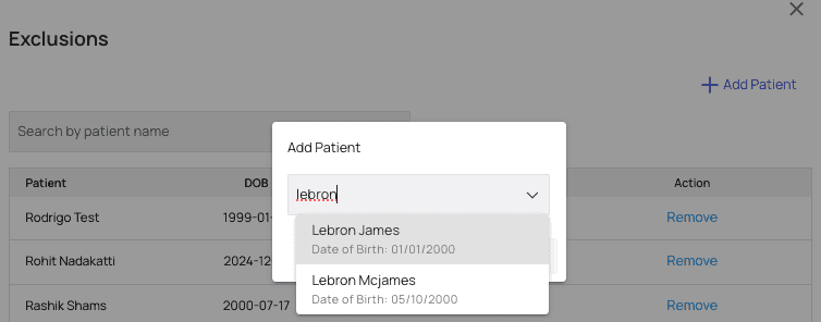 Exclusion Settings and then click Add Patient.
