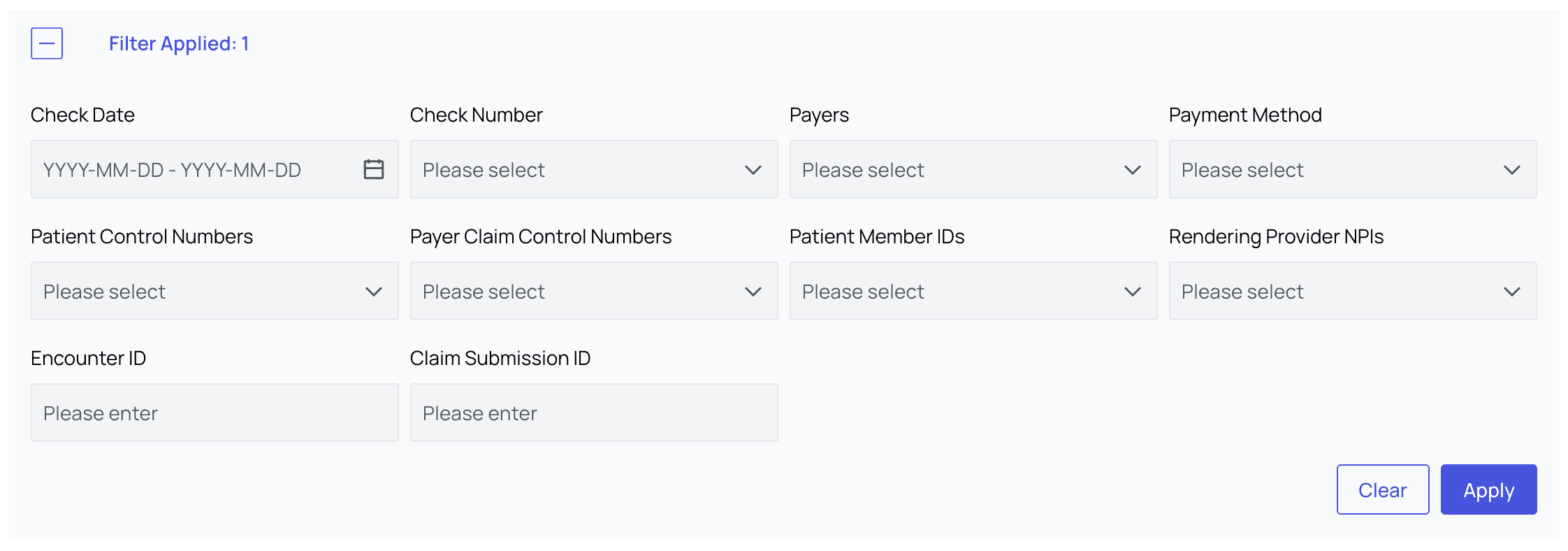 - Filter Remittances — we’ve also provided a wide variety of filters to help you narrow down to just the subset of remittances you’re looking for. This is particularly helpful when investigating missing deposits.