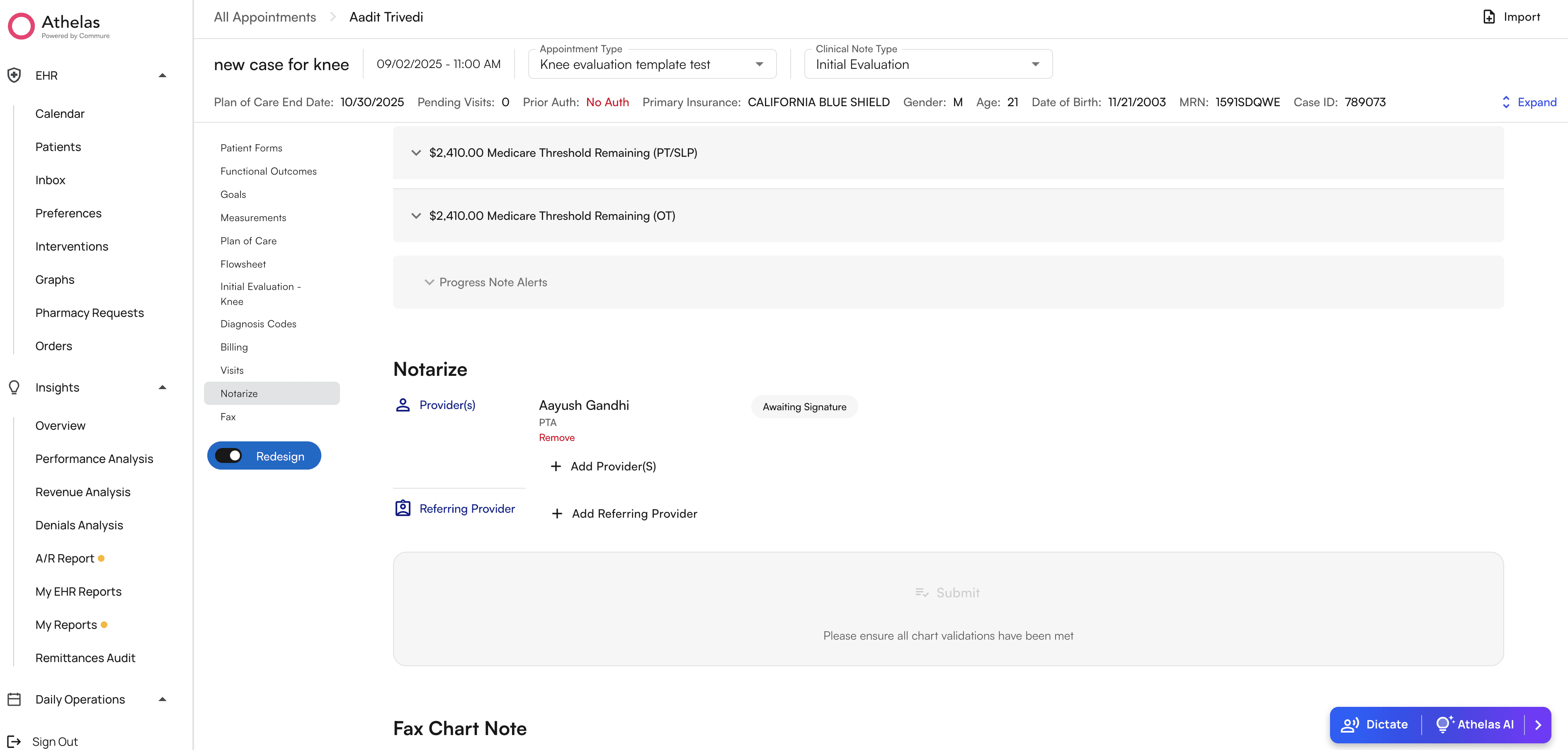 - Click “Athelas AI” to open the Athelas AI widget, and then click on the “Assistant” tab. You’ll see a chat history page with no current chats, click on the “Start New Chat” button to start chatting