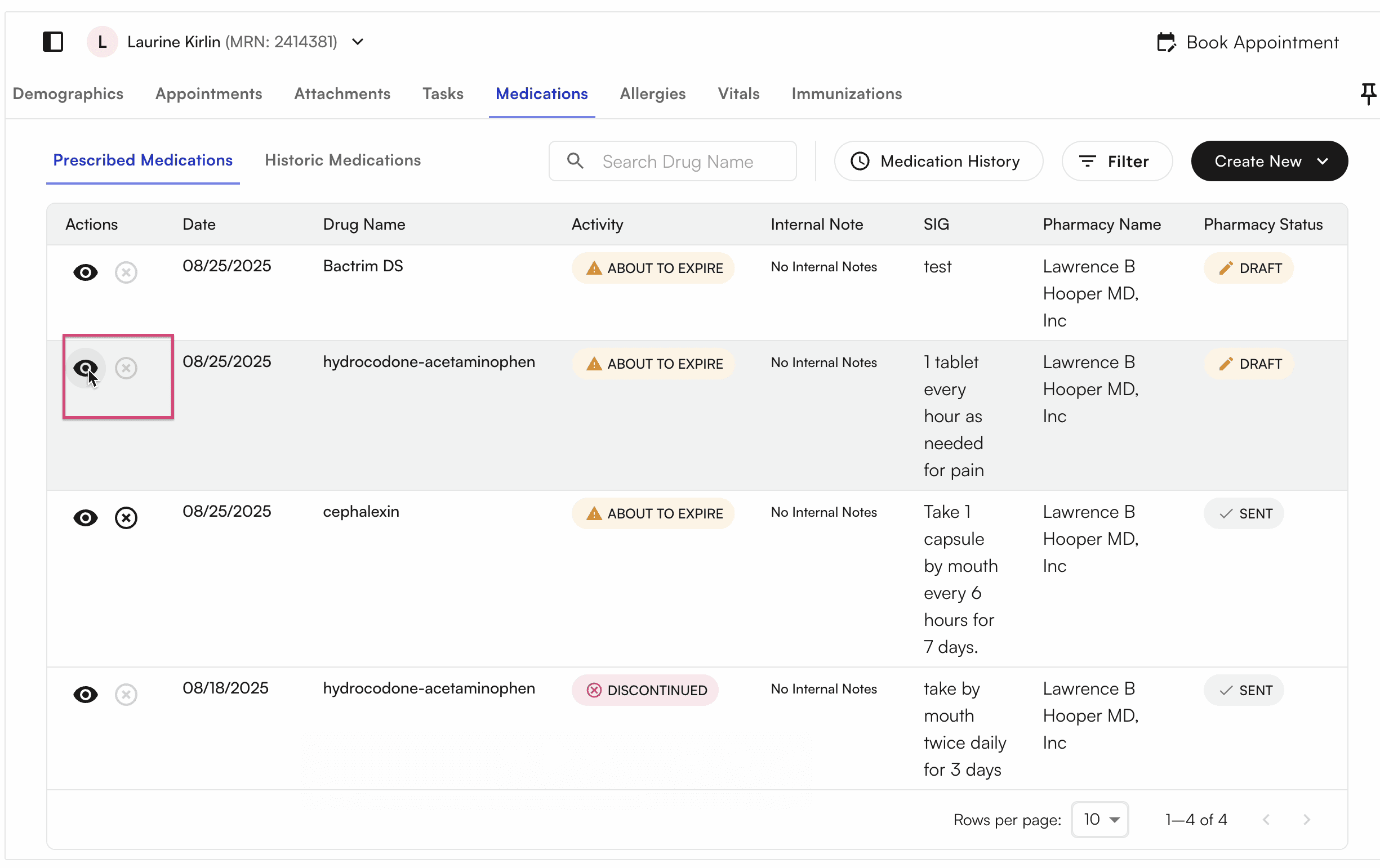 Providers can prescribe medications in the EHR, but given their busy schedules, they often don’t have time to fill out multiple fields and submit prescriptions themselves. Instead, they rely on staff, typically MAs, to draft prescriptions for later review and sign-off, or to directly prescribe when the medications are not controlled.Solution