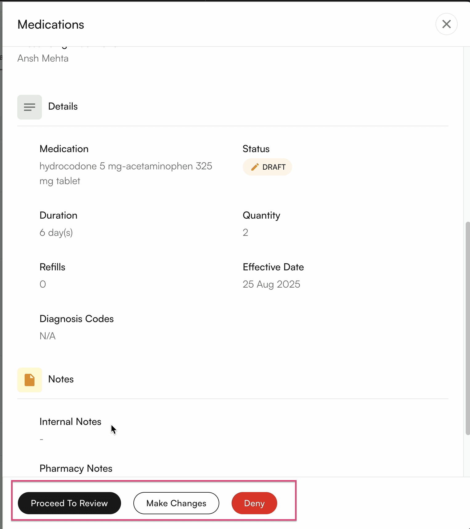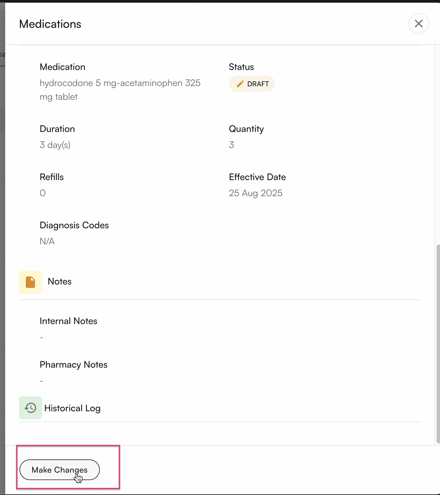 Providers can also make changes to draft, but they cannot save drafts, they can only prescribe them directly.