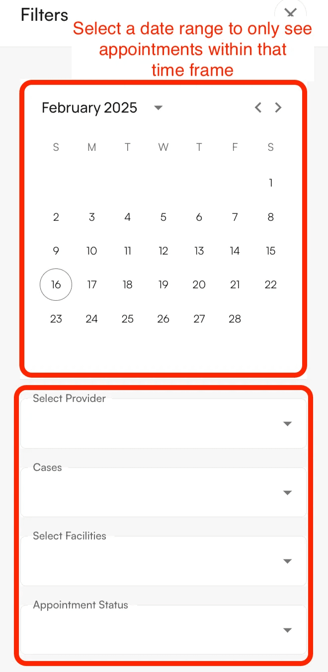 - Appointment Status You can combine different filters to find specific appointments that the patient has/ had.